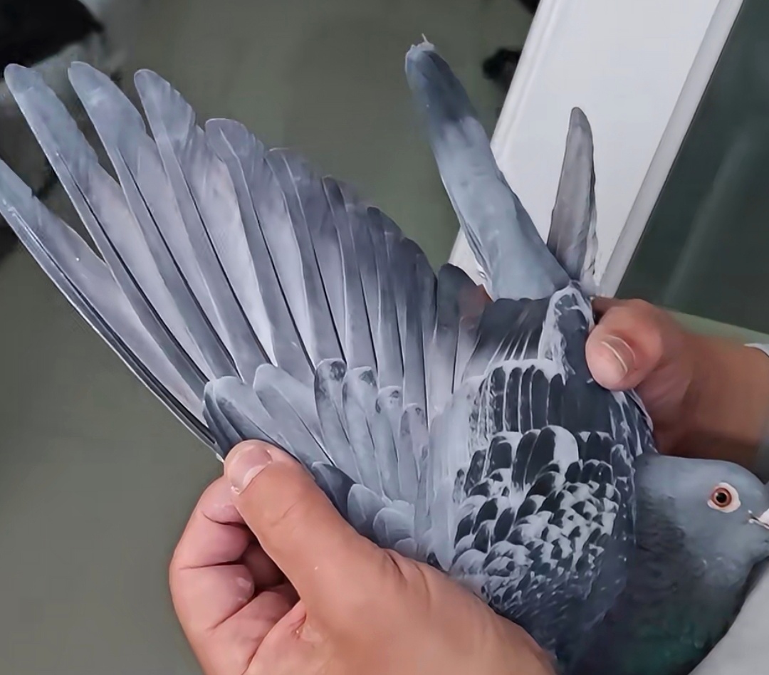 它的最大的一个优点就是——特别有韧性。什么意思呢?就是哪怕比赛当天天气特别差,刮风下雨、低温大雾,别的鸽子可能就失踪了,但盖比往往还能咬着牙飞回来。这种抗压能力和归巢意志,在恶劣天气比赛情况下特别关键。