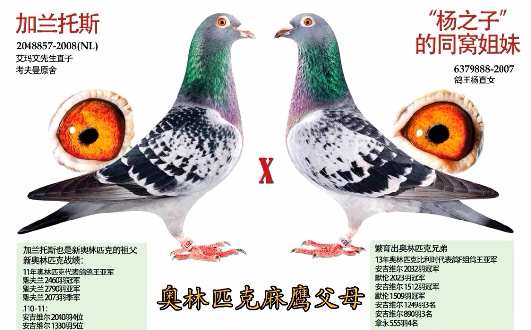 如果想给麻鹰雌鸽换配,则应寻找“利奥003”血系,或带有003与麻鹰直系血缘的鸽子。