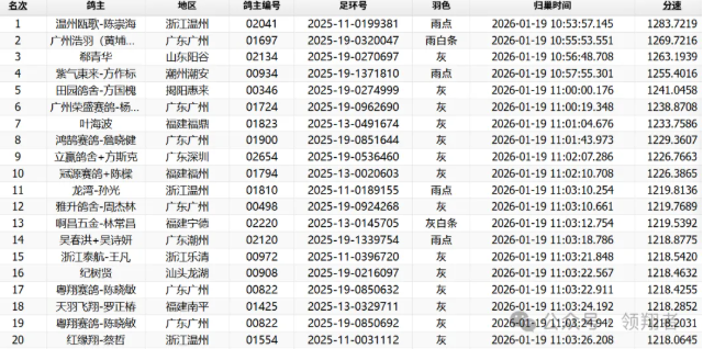 广东恒通(春棚)第二关开笼,小鸽子穿云破雾强势归巢