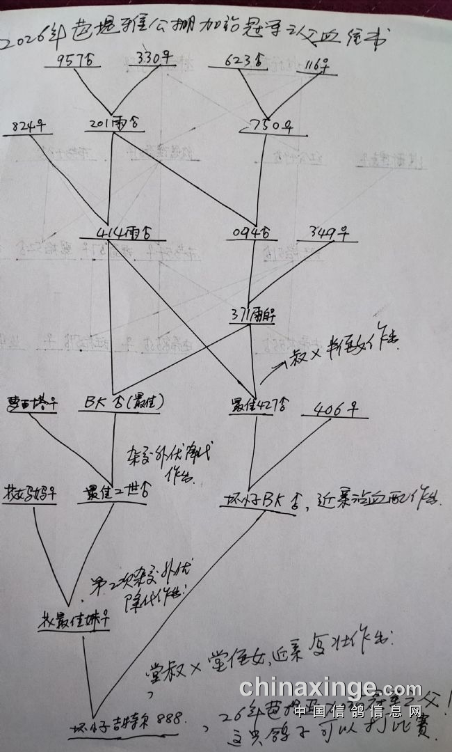 看了血统书我发现这个冠军是由顶交配对作出的,父亲是多次近亲沾血配作出的,最后是最佳吉特尔的侄子,交配最佳吉特尔的直孙女,堂叔x侄女,近亲复壮作出的,个人认为:这只鸽子可以打比赛。