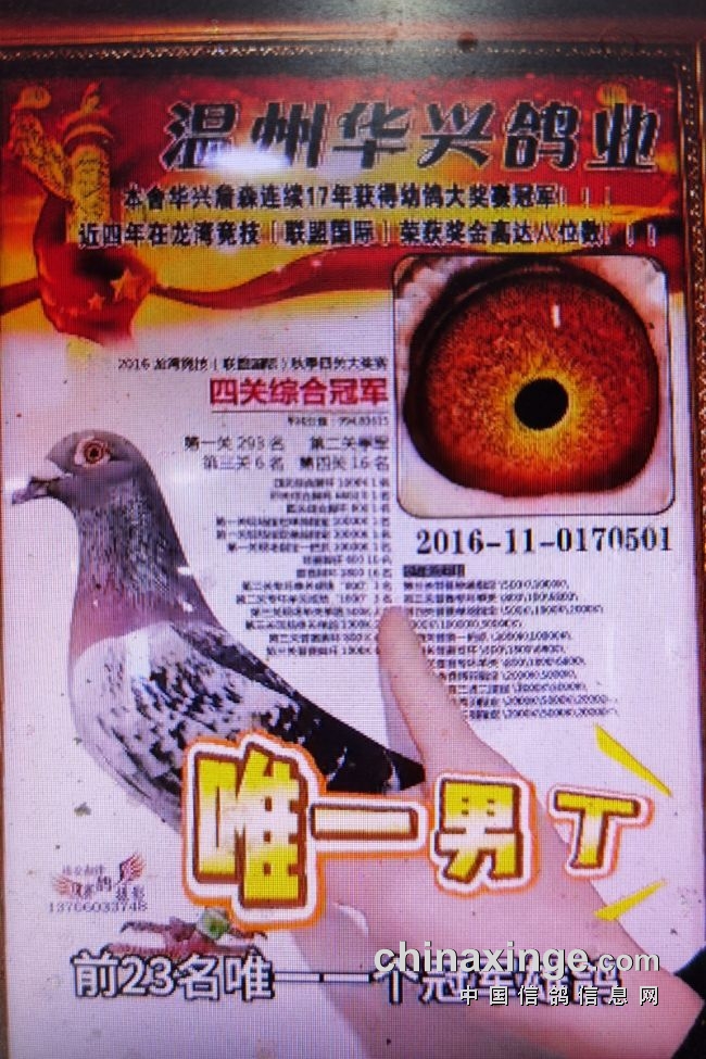 图3:多关赛前23名中唯一高位获奖雄鸽