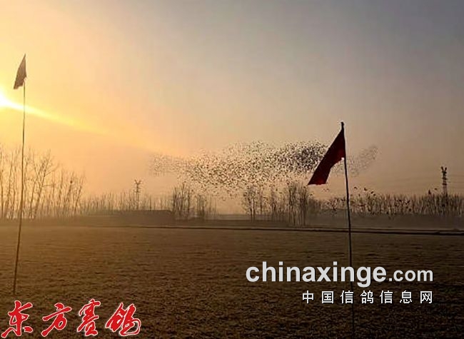 开笼:司放地沭阳的早晨晴,气温零下3摄氏度,07:04日出。07:58两辆赛鸽车开笼,爱翔战将迫不及待地从赛鸽车中飞上蓝天,盘旋用时约12分钟后,踏上了回家的征程。走势良好。