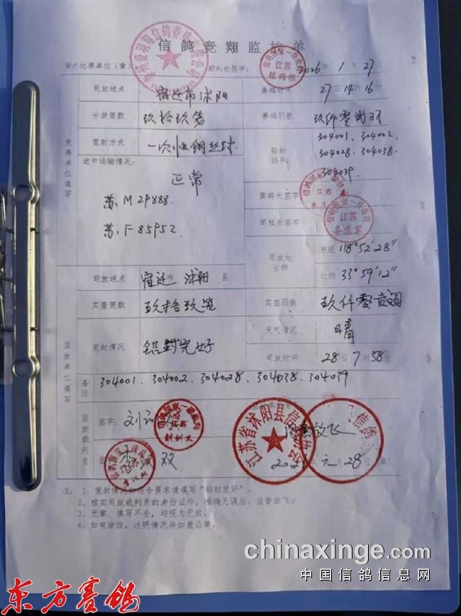 2026年1月28日,江苏爱翔赛鸽中心春棚2026年首届春赛第一关180-220公里比赛于早上07:58在江苏沭阳开笼,实际空距209.4公里。9002羽战将出征争夺50个正赛入赏名额,其中3235羽参与技能奖的争夺,748羽角逐本关精英赛的28个有奖席位。