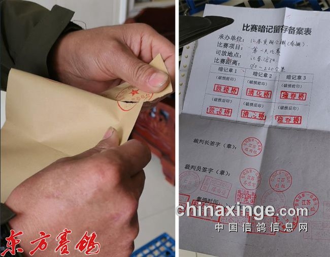 打开密封文件,取出暗记留存单,准备验鸽。