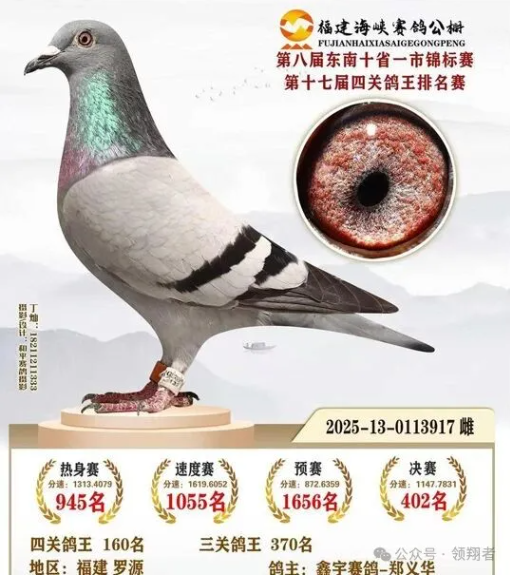 郑义华、郑义明兄弟鸽舍老系新血海峡公棚大团体夺冠!