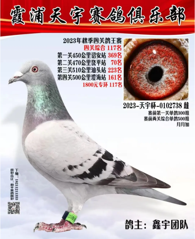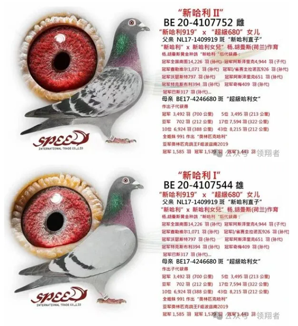 刚开始进入公棚比赛后,发现我们的鸽子速度有点慢,尤其在短距离比赛上很难得名次,只有到了500公里时才有机会入赏,而且也时快时慢不稳定。为了能让自己的鸽子适应公棚赛的速度和距离,差不多是在2022年,我们托在欧洲的朋友,引进了三羽哈利的子代。这三羽鸽子来到后和我们原有的鸽子交配,将四羽小鸽子送到霞浦寄养棚,其中就有两羽打到决赛,入赏四关综合鸽王。