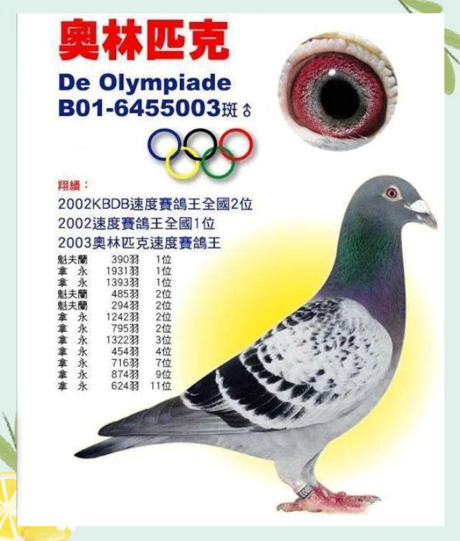 父系融合利奥奥林匹克003与“鸽王杨”两大王牌——003直子×003兄弟直女的表亲回配,结合鸽王杨直子与直孙女的双重回血,将铭血竞速基因高度凝聚。