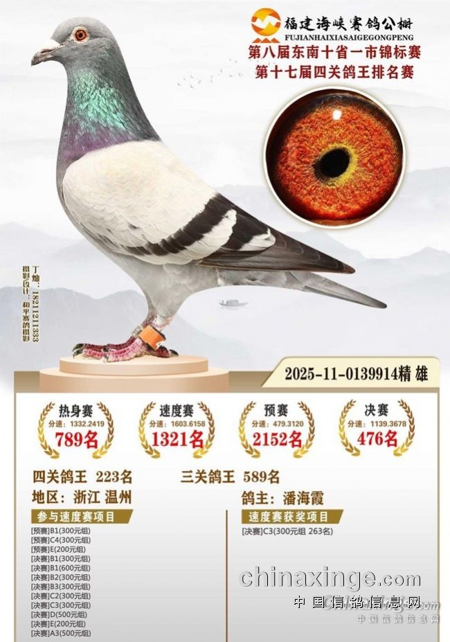 2025年秋,公棚赛缴费35羽,一共进奖14羽!以下是奖鸽照片: