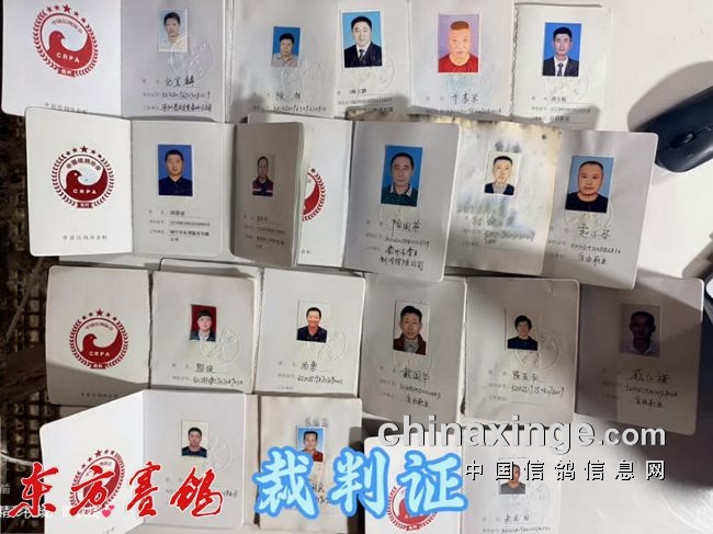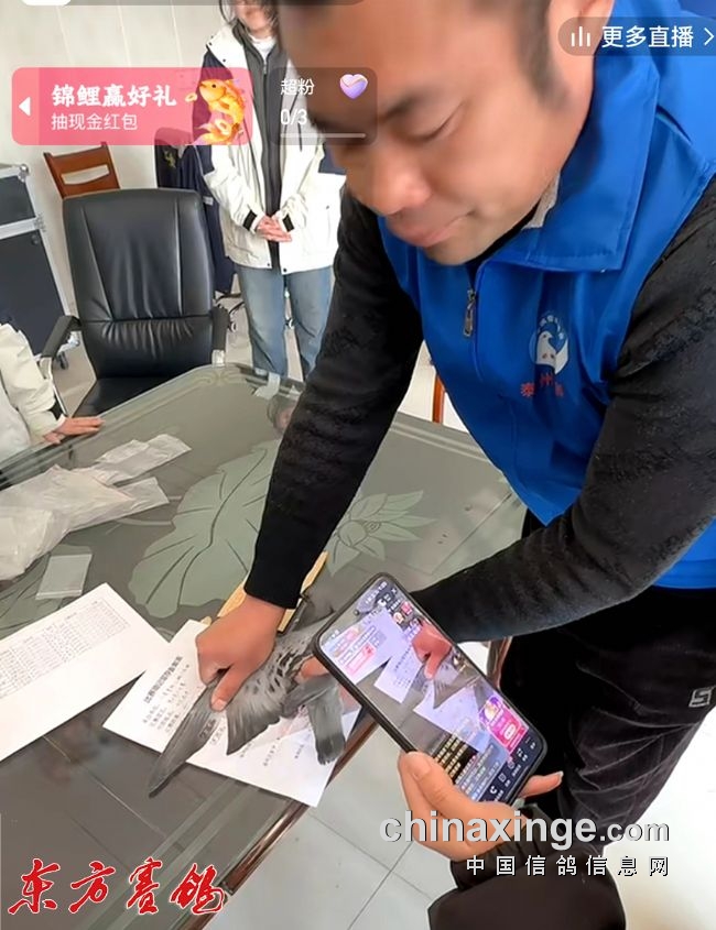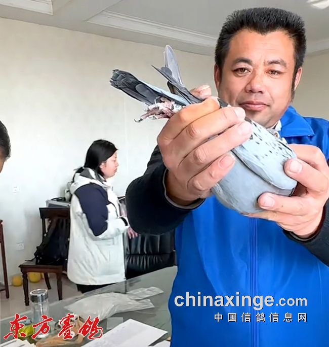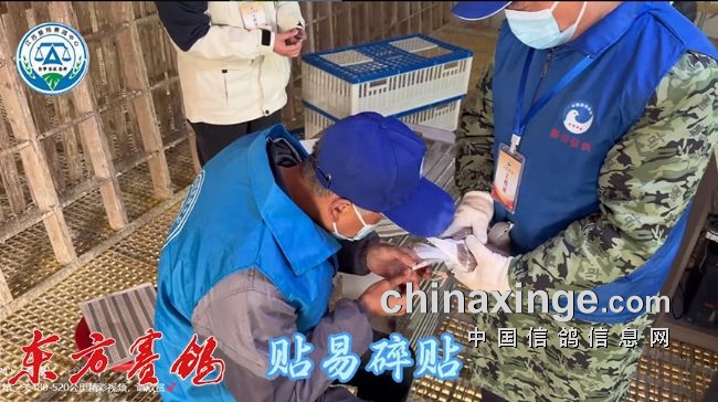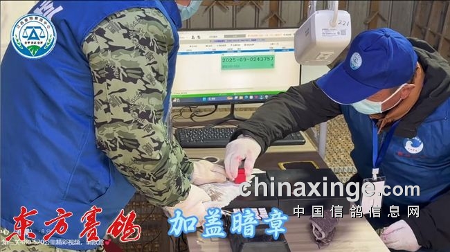 裁判员验鸽核对翅膀章。