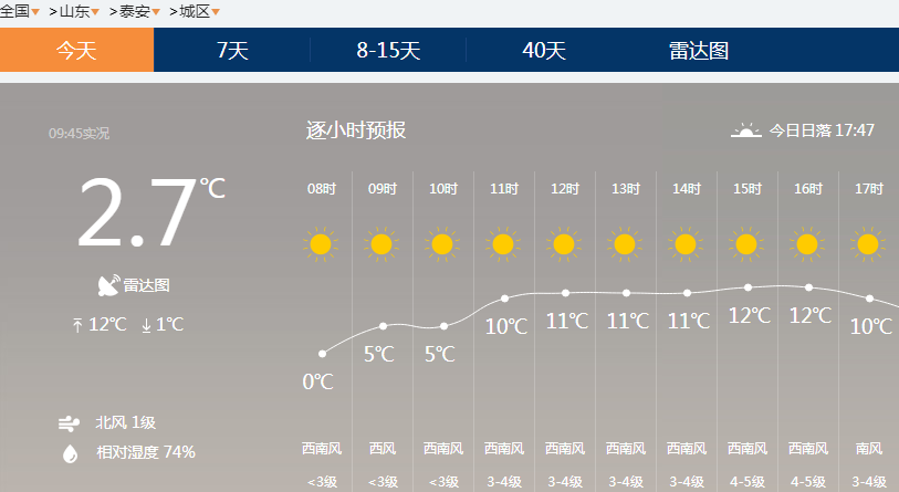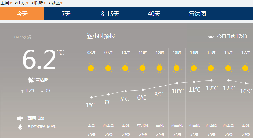 临沂地区,9点南风1级,10点西风1级,11点北风2级。