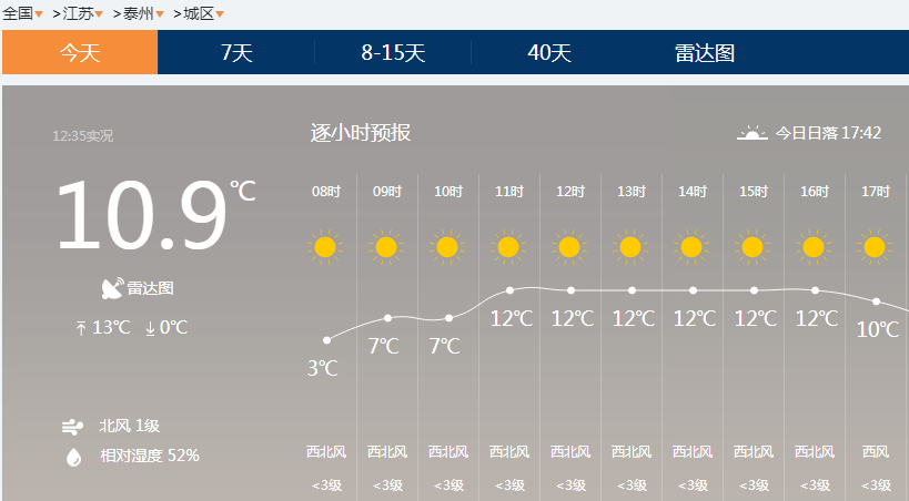 泰州地区,12点以后顺风西北风3级。