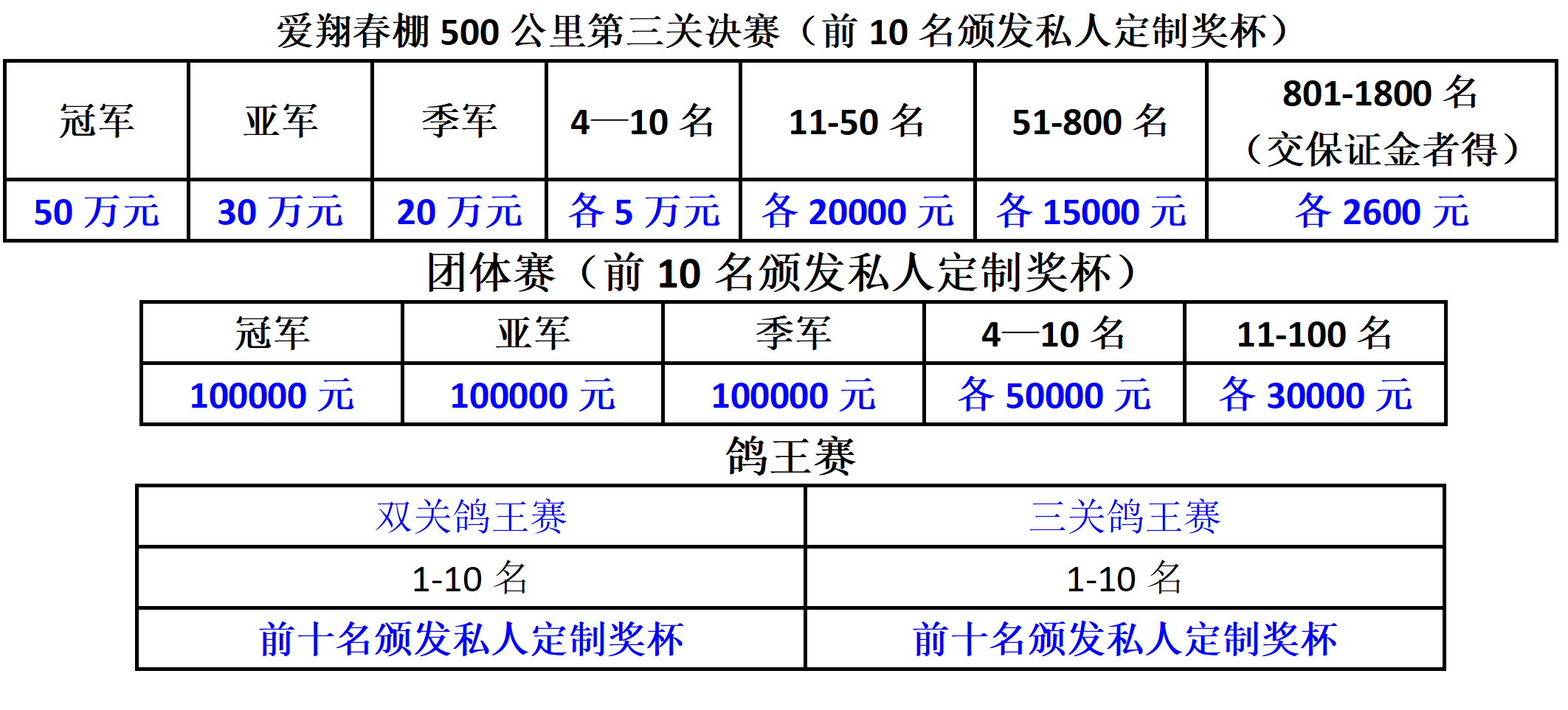 在邂逅雾霾的气象条件下,爱翔战将奋勇穿雾越霾凯旋,800个关赛正奖用时46分58秒报满。团体与鸽王赛等奖项也随之横空出世。他们分别是: