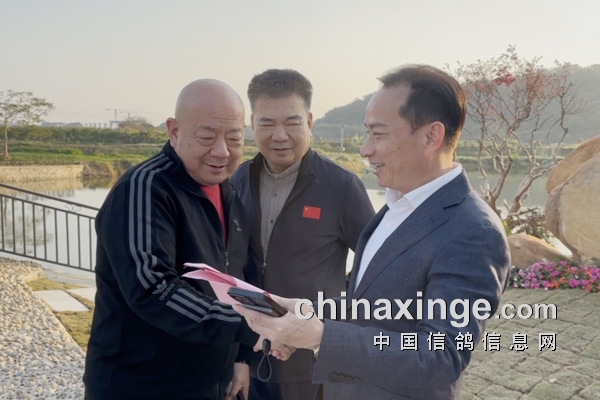 广东恒通董事长丁文雄与广东省信鸽协会副会长许旭辉(左)林旭辉(中)