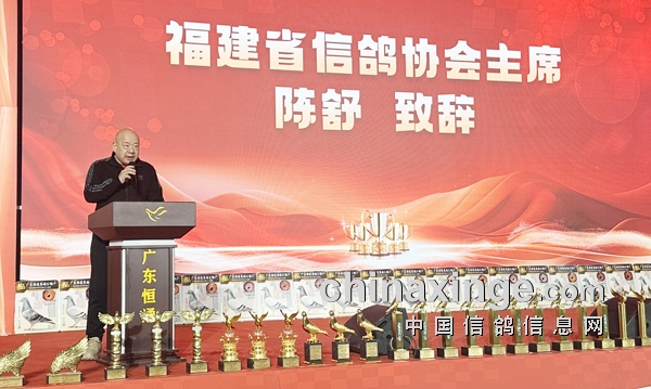广东恒通春秋两棚地处潮州,是养鸽人最密集的粤东地区,也是闽粤两地鸽友的中心节点。为此,中国信鸽协会副会长、广东省信鸽协会会长陈伟强,中国信鸽协会竞翔部副主任、福建省信鸽协会会长陈舒,也受邀参加了本次颁奖大会并致辞。