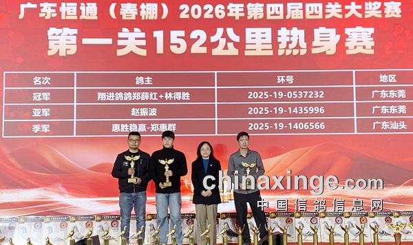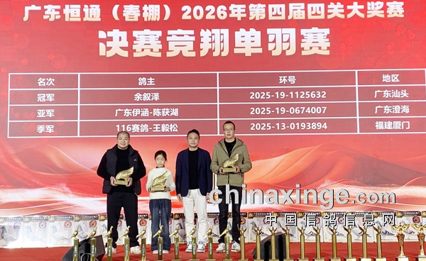 中国不缺好鸽子,好赛场上更不缺好鸽子!2026广东恒通(春棚)四关比赛关关精彩夺目,每一关分速都在1200米-1300米之间,无论天气如何,赛程远近,小鸽子的表现始终神勇如一,全凭一对翅膀来证明自己。