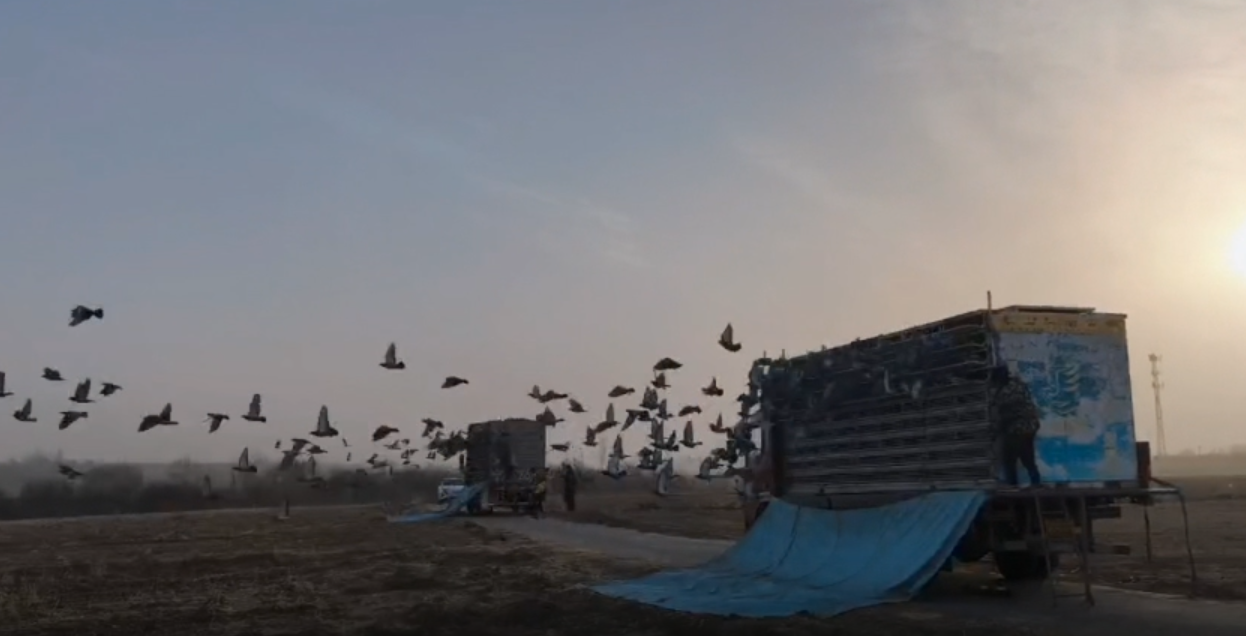 2月22日,宁夏塞上江南公棚第一关在甘肃环县八珠乡打响。早晨8时18分,5016羽赛鸽开笼放飞,比赛空距286.86公里,司放地天气晴,赛鸽走势良好。