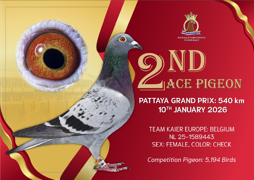 作为汇聚全球59个国家精英赛鸽的顶级盛宴,芭提雅国际公棚赛竞争异常激烈,全程赛事极具含金量,其中540公里决赛更是历经5小时角逐,冠军鸽以1665.1米/分的惊人分速率先归巢。而开尔麾下这羽威廉血系幼鸽,凭借稳定且迅猛的发挥,与冠军鸽同梯队同时归巢,最终位列决赛16名,结合多关赛事的综合表现,成功斩获鸽王亚军头衔,成为本次赛事中最受瞩目的新星之一。