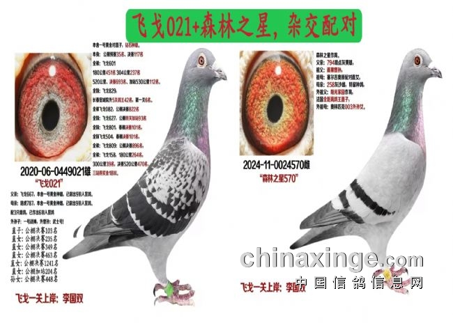 2026年2月20日下午4时,舍内种鸽正式合对,一共合了27对,其中:3对一公配两母的组合,一共30对,包括保姆鸽。 到2月28日,已经下了14窝蛋。 今年保持了7对去年的成功配对,又配了7对新的配对组合,其中有6对是沾血配的组合。 老飞戈的第3代至第7代,5代同堂,共同竞技比赛。 以下是出过成绩配对的图片: