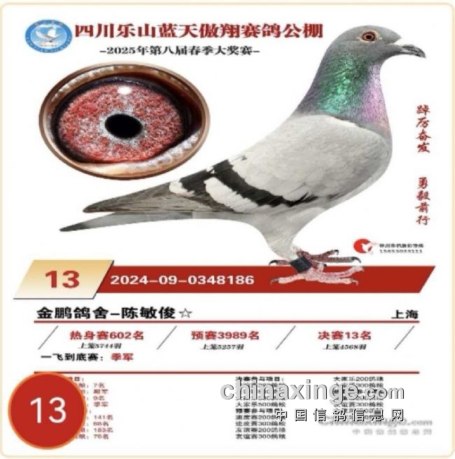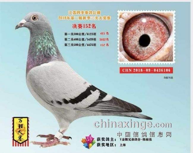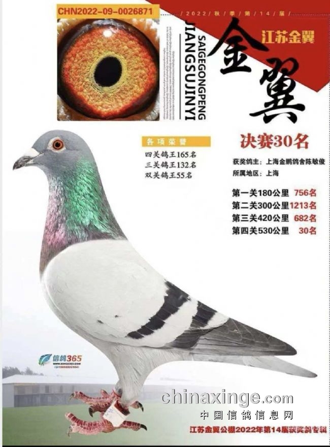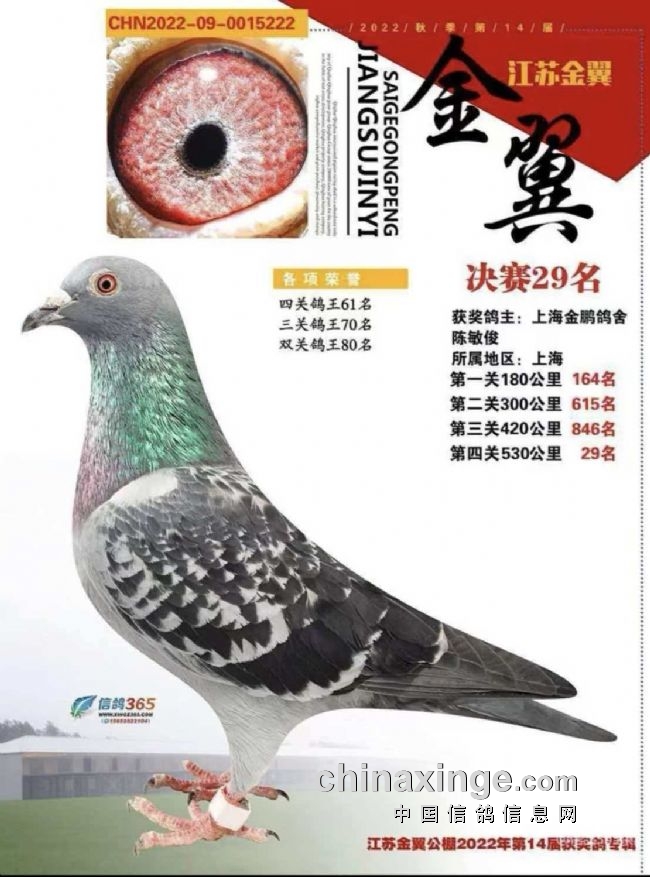 15、江苏金翼公棚决赛30名、双关鸽王名55名;