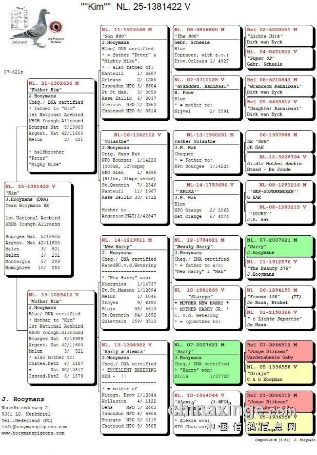 25年KBDB全国全能幼鸽王冠军--“金姆”血线图