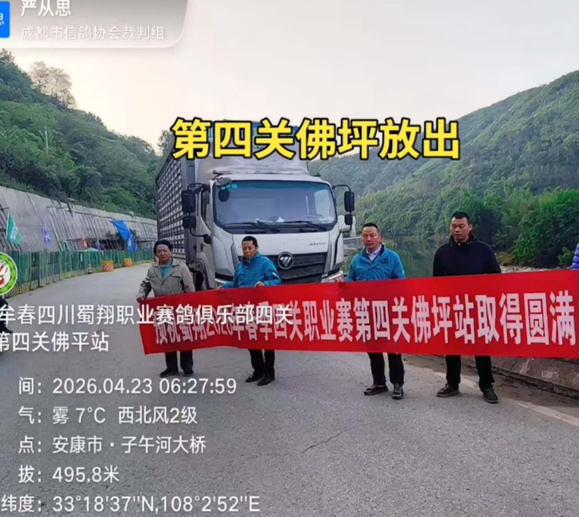 4月23日早上7点18分,四川蜀翔俱乐部“天府杯”第四关佛坪站准时开笼,司放地天气晴。本关集鸽949羽,参考空距560公里,参赛鸽成绩低于380米/分失格。