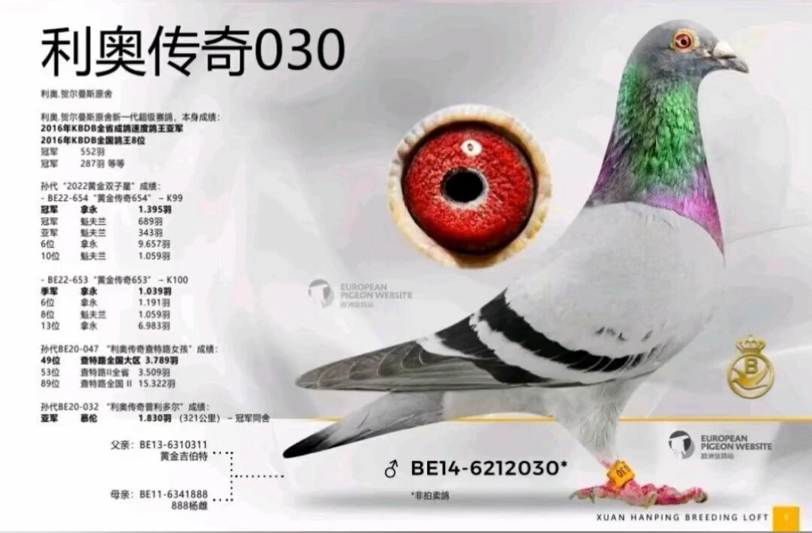 030是利奥原舍最年轻的鸽王,而这个配对是罗西与新罗西最好的传承者,这不是简单的近血,这是一次将利奥速度王朝核心代码重新激活的伟大复刻。