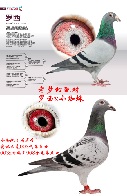罗西与小蜘蛛这个史诗级配对,源自超级鸽王908与908亲弟的血脉结合,并融入了奥林匹克003,作育出的新罗西、芬娜、弗洛利斯,直接奠定了凡登布克与威廉·迪布恩两大血脉的基石。