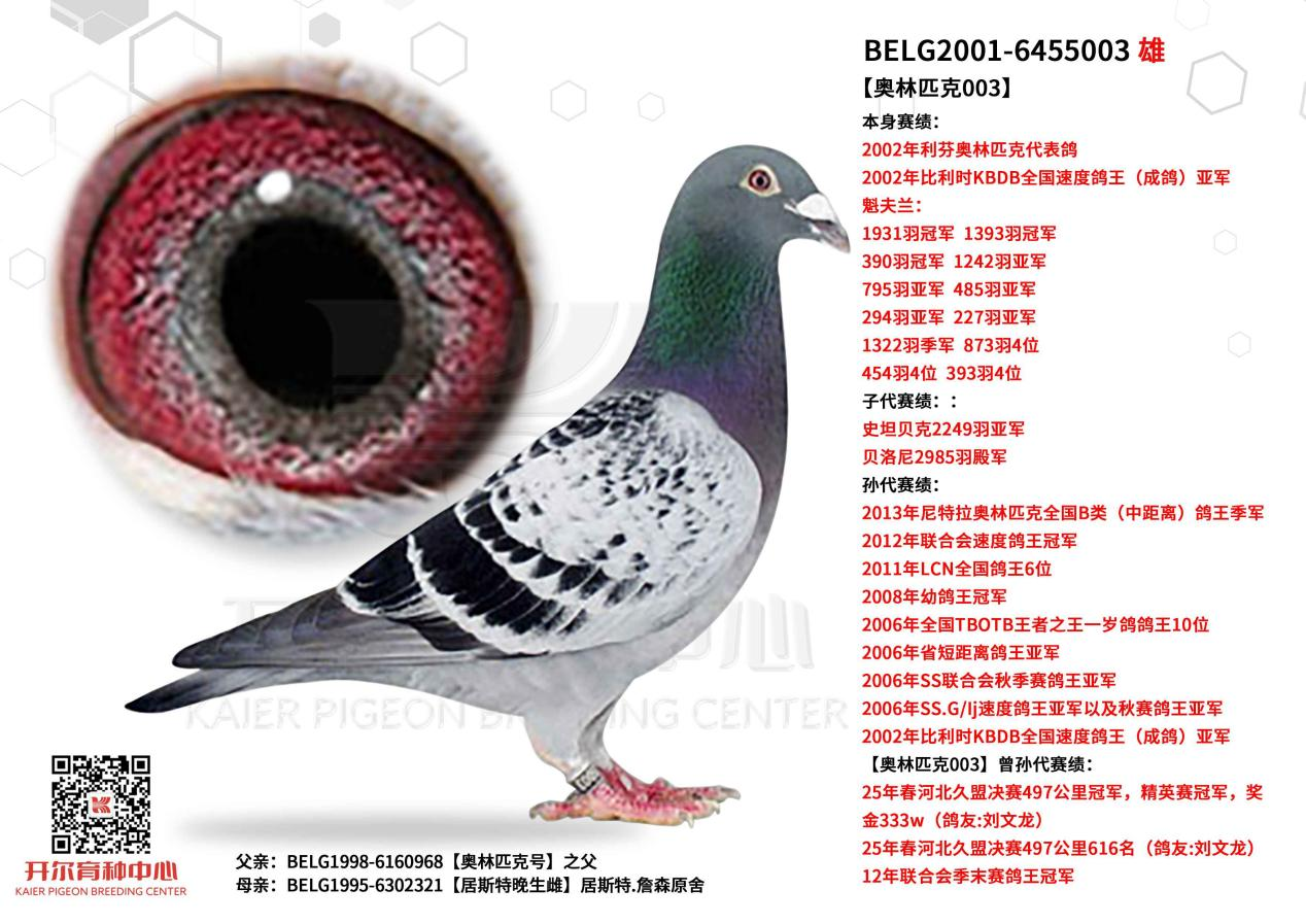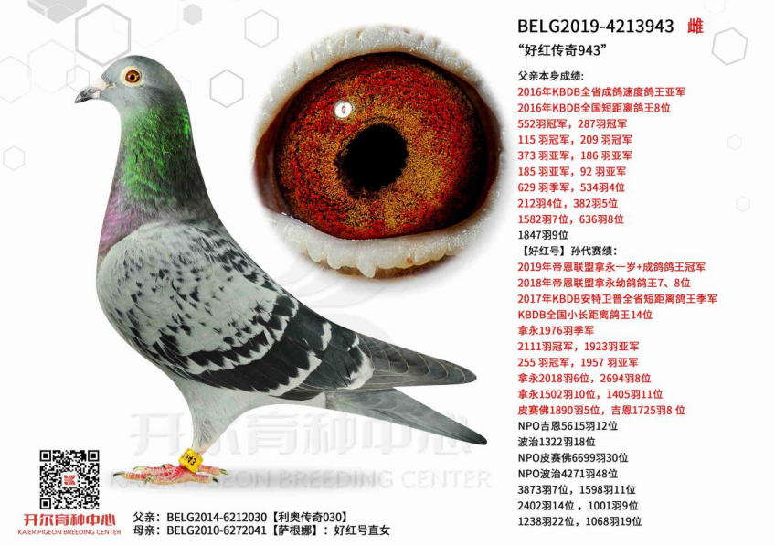 开尔重点配对,030直子与直女的结合,雄鸽好红传奇684,与雌鸽好红传奇943的母亲都源自好红号亲兄弟992与好红号996,而992和996的母亲黄金女郎是新罗西与独眼雌的最佳直女,030又是罗西与新罗西的多重回血,这个配对极致复刻了罗西与新罗西,在血脉上完成了一次高浓度的叠加。