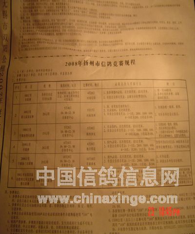扬州08年竞赛规程早出台 鸽友拍手齐叫好