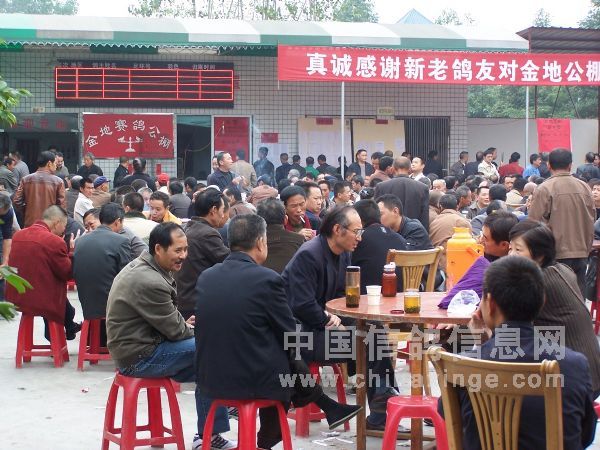 2008年11月8日成都新都金地赛鸽公棚首届秋季决赛380公里,此次预赛和决赛都是成都市鸽协委派裁判全权进行执裁。今天鸽友是早早地聚集在一起,期盼鸽子快点归巢,可是九百余羽赛鸽当天一羽未归,但鸽友对成都市鸽协大力度的监管和公棚的组织工作是认同的,大家都期待明天自己的鸽子飞出好成绩。