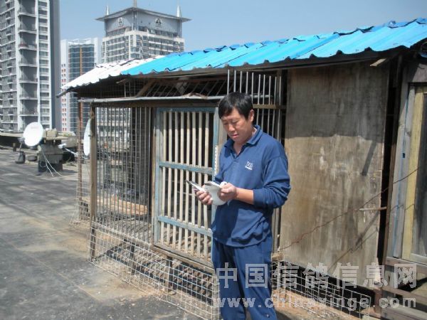 老伍本名金庭生,沈阳养鸽人都认识他,为人朴素、憨厚、诚恳、虚心,周围邻居相处相当融洽。今年45岁出头,现任一所学校员工,业余爱好就是养鸽子,家住9楼顶上,上下两建鸽舍,鸽舍主要品系:以杨阿腾、幕利门、美国威廉杨、苍白骑士、银影。鸽届鸽友都非常尊敬他,养鸽十几年先后支援外地鸽友获奖无数,自己本身成绩也显赫,但他从不张扬,用他一句话说,“鸽子这个小东西只要你付出了,你一定会得到回报,鸽子是靠飞出来的,而不是吹出来的。”