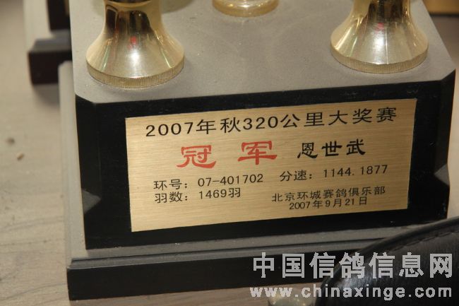 正是这种执着,他参赛于2009年5月国家赛北京地区600公里时,获得冠军。这是一羽雄鸽,黄眼,分速达到1321米/分。