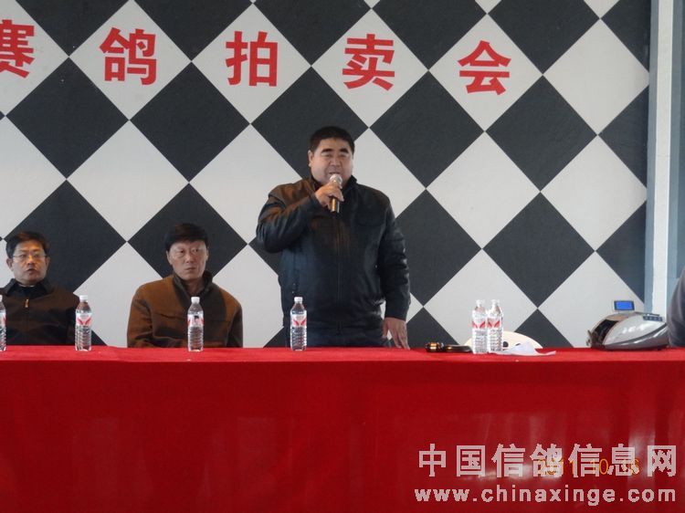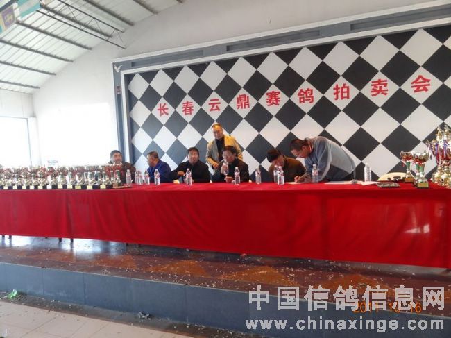 这次拍卖大会是在云鼎公棚礼堂召开,长春市信鸽协会主席鲍建明、副主席于宏、李继红、范建军,预、决赛总裁判长温志成、榆树市协会秘书长龚继平、五常市鸽会主席王金参加了会议并在主席台就座。