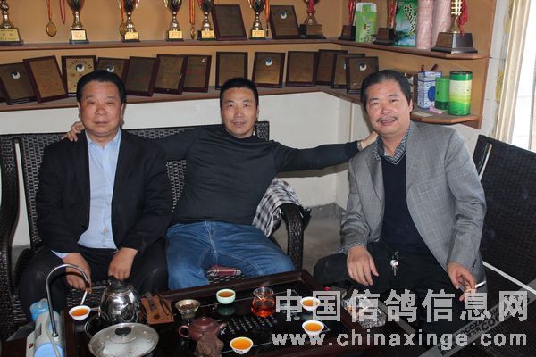 杨永平先生(中)与鸽友合影