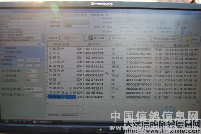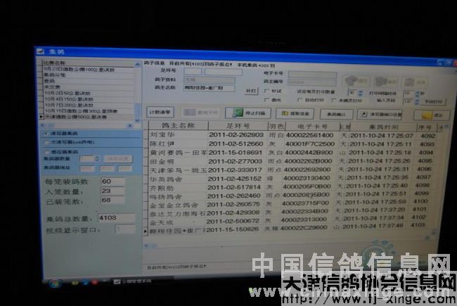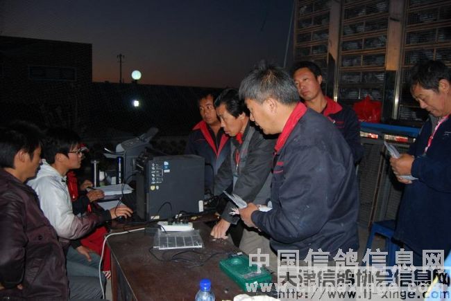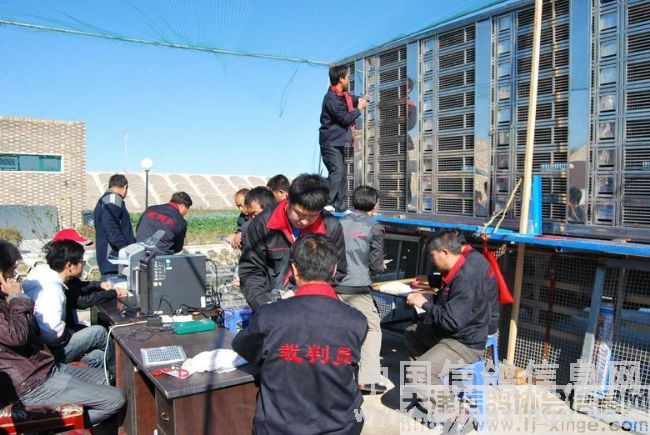 10点18分,集鸽工作正式开始,期间中午吃饭也是互相倒替,没有间断集鸽工作。负责监督电脑的裁判员,多次抽查、记录扫描上笼赛鸽的资料,以备日后发现问题进行比对查验。集鸽工作进行的非常流利。至傍晚17点37分,全部赛鸽检录上笼完毕,其中有12羽赛鸽扫描受阻,最后经过查验,三羽赛鸽电子环损坏,更换电子环后入笼比赛,其它九羽赛鸽为弃权鸽及非公棚鸽,总计集鸽4103羽。经过查棚、拷贝数据库、销毁羽印、铅封鸽笼等工作,集鸽工作全部顺利完成。