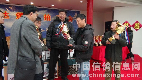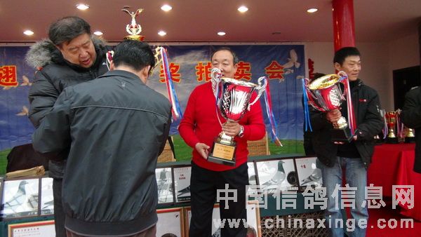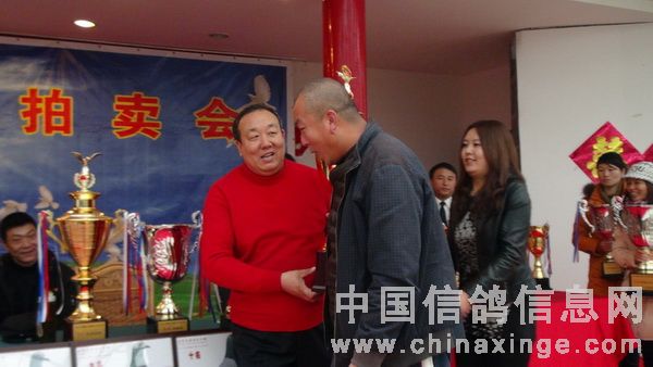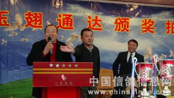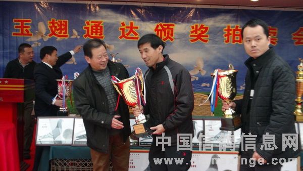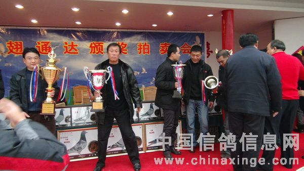 颁奖会由著名拍卖师冯建华主持,北京市鸽协领导参加颁奖大会,北京市裁判长宣读了获奖名单,著名拍卖师李武主持拍卖会。拍卖由400名开始,起拍价1000元。拍卖至300名时,即十二点多,午餐开始,原本一桌十人就餐,由于来者超过预定人数,改为一桌十二人就餐,可见鸽友对玉翅通达公棚的期望值是何等的高。