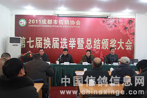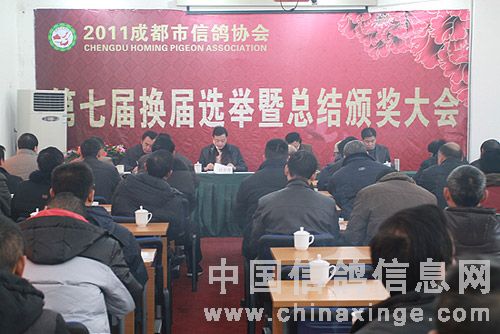 成都市信鸽协会第七届换届选举暨总结颁奖大会于2011年12月24日在温江顺利召开,成都各区市县代表以及年度赛鸽获奖鸽主皆莅临到场。整个会议在热烈、有序的氛围中顺利进行。