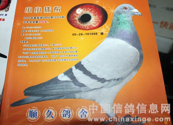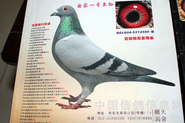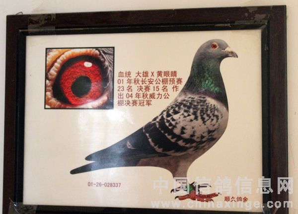 李顺久在西安鸽界算是大户,本身就是一位企业家,此前还办过西安古城公棚,他最辉煌的是曾经获得西安威力公棚决赛冠军、西安金佰利公棚决赛冠军和北京侨友公棚鸽王,还有他支援别人的鸽子还获得过陕西天禄堂公棚冠军,另外,西安李文琦在四川公棚飞的伯马冠军也是引进他的鸽子出的。前年冬季四川几位鸽友专程来西安拜访他,当时就看上他鸽棚内几羽获奖鸽子的上代种鸽,并出价10万元欲购买这鸽子,被李顺久婉言拒绝了,最后出于情面转让了几羽它的子代幼鸽,没有想到第二年秋季立马在四川获得了大奖,鸽主远程电话道喜。