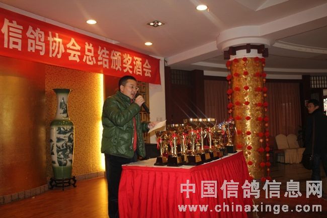 颁奖酒会在县鸽协主席邱海翔主持下召开,辜建明主席并发表了热情洋溢的讲话,辜主席道出几年来成都市鸽界发展历程,并对鸽界现状进行了总结和展望。赢得现场鸽友热烈的掌声。新津县文体局陈建新和民政局罗留安纷纷表达了政府相关部门对信鸽运动的鼓励和支持。