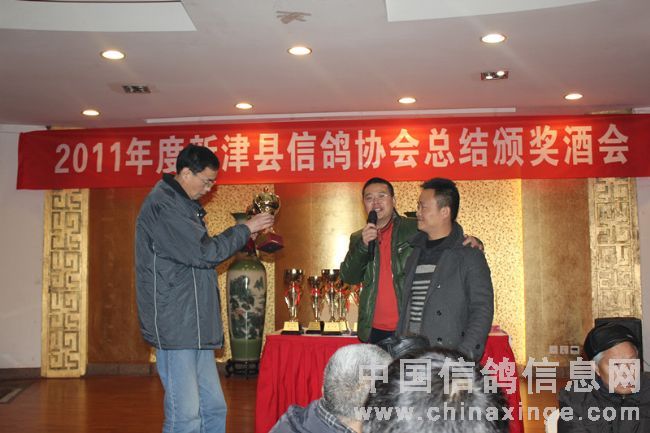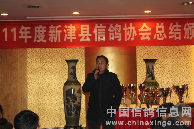 紧张、激烈的2011年赛事尘埃落定,硕果累累、奖杯满仓。新津县鸽协会员在年终颁奖酒会中齐聚华西希望集团花舞人间。成都市信鸽协会主席辜建明、成都体育局副局长李民生、新津县文体广新局副局长陈建新、魏平,新津县民政局副局长罗留安、眉山市信鸽协会主席何岷、邛崃市信鸽协会主席王元昌、彭山信鸽协会主席张树根、大邑县信鸽协会主席陈亨全等纷纷到会。成都市电视台、新津电视台新闻部均派出新闻记者参与了采访报道。