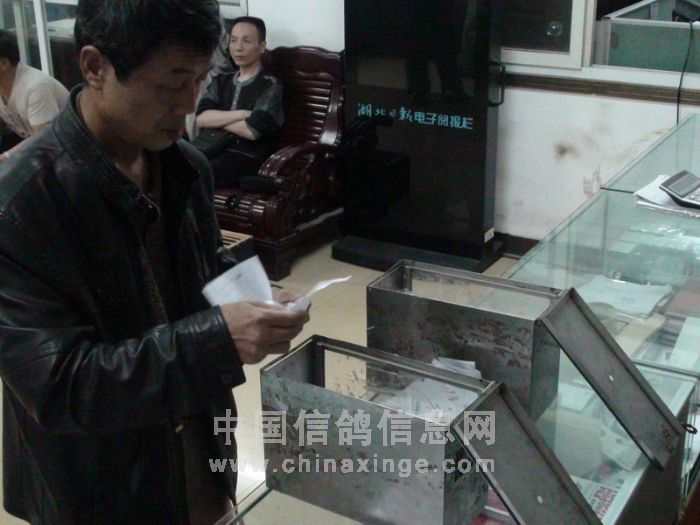省鸽协委派的黄石裁判将装有竞翔单的封箱从保险柜中取出