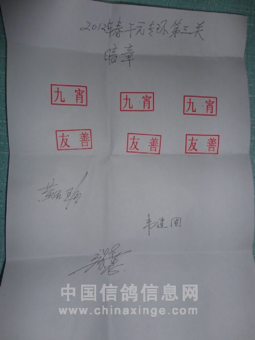 同时2010年春千元专环第三关暗章也在鸽友及裁判员的监督下开封