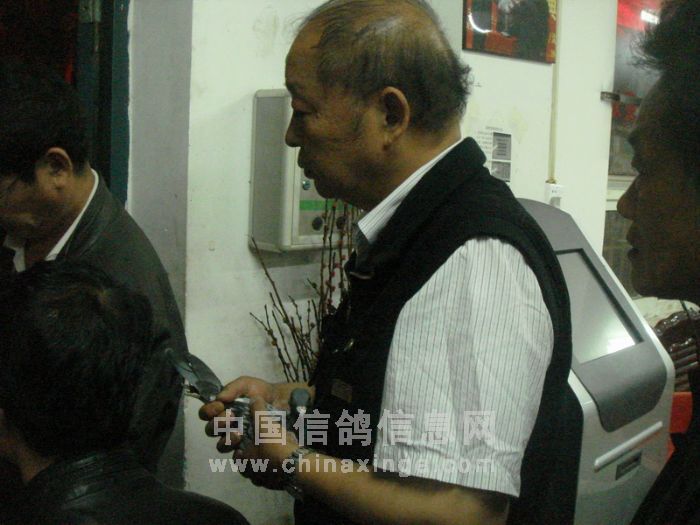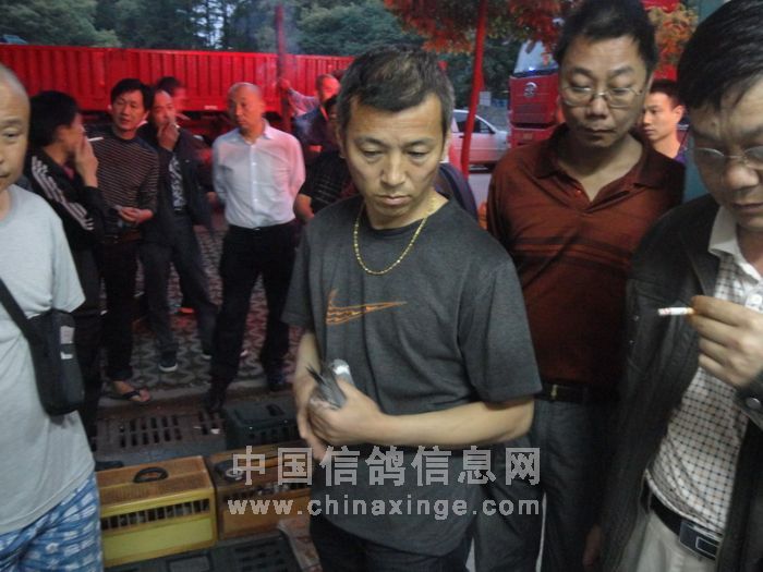 本关初排季军、第7名、第9名获奖者——谢晋生,接受裁判验鸽
