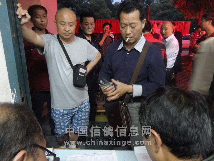本关初排亚军获奖者——神州鸽舍,接受裁判验鸽