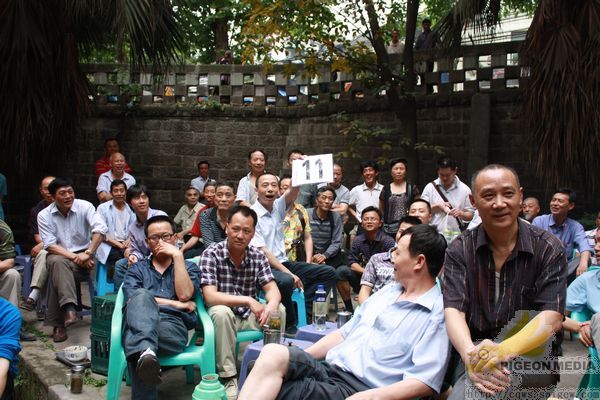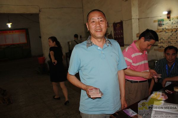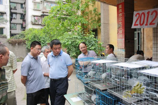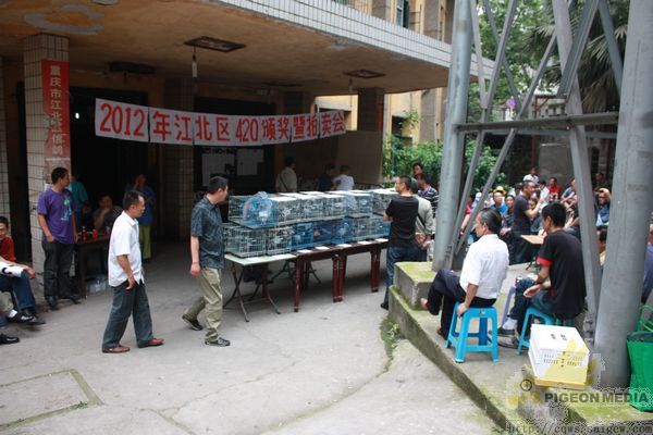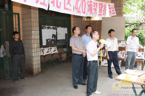 到场人物组成:获奖鸽友、观摩鸽友、江北区体育局工作人员、江北区鸽协主席黄焰、副主席万斌、谢浙渝、区鸽协裁判长苏德元