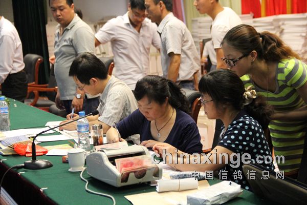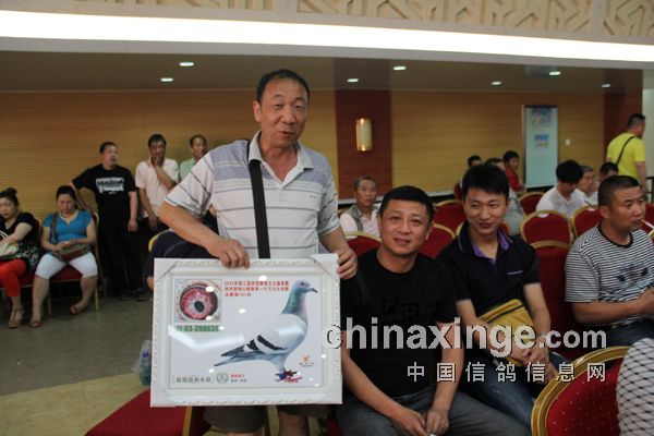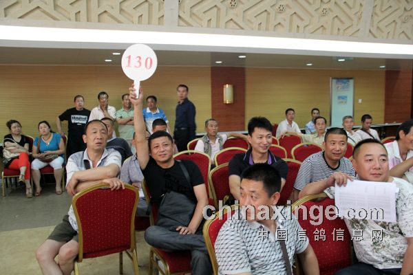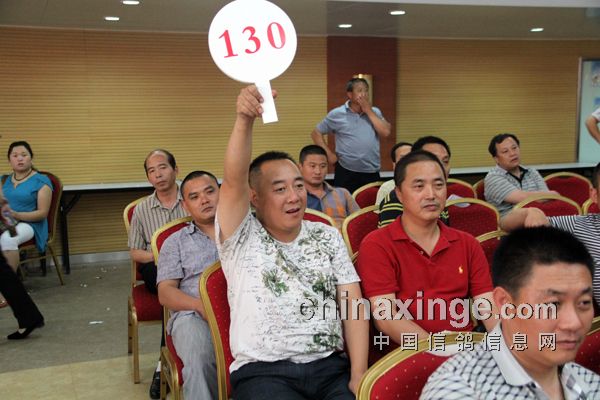 本次拍卖会的特点是名家名人获奖鸽、鸽王和汽车大奖赛获奖鸽容易掀起高潮,鸽王冠军,决赛32名,陕西金钻啸天的一羽26—300338灰、黄眼、雄鸽,初次叫价三万元,第二次竞价五万元,第三次竞价七万五千元,经过连续九次竞价,最后以十一万元拍出。鸽王亚军,决赛36名,为云南昆
