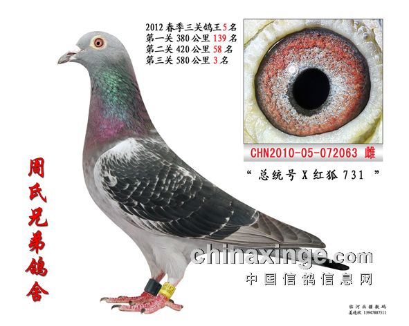 2012年春季三关鸽王五名周玉龙(兄周玉川代照)