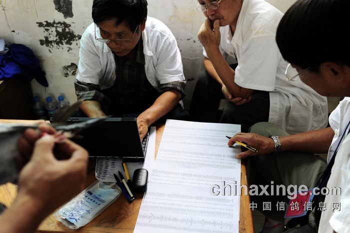 贵州省信鸽协会裁判正在验证获奖鸽资料