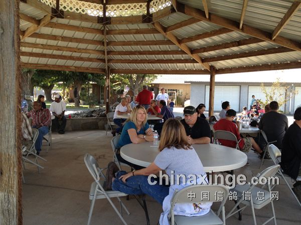 公棚章程以同时归巢的鸽子共享名次计奖。俺的鸽子虽然是第二羽打的钟,但它是和第一羽扫描的鸽子同批归巢,所以这两羽鸽子平分第一名和第二名的奖金。这种方式看上去挺公平的,不过第一批有一大群鸽子回来时,奖金就被稀释了。
