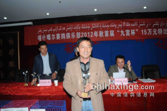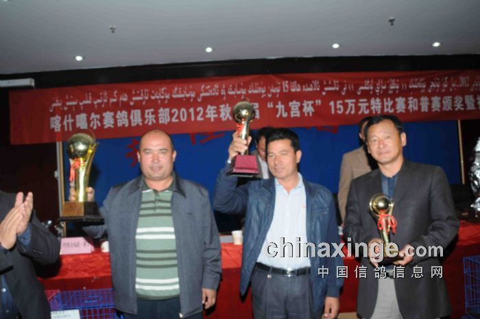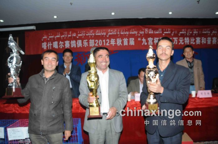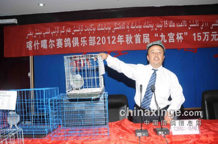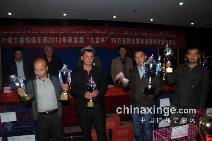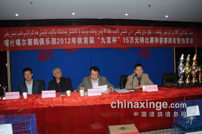 2012年10月13日,喀什噶尔赛鸽俱乐部2012年秋首届“九宫杯”特比大奖赛和第二届“希望杯”普赛颁奖暨拍卖会,在喀什市新隆大酒店六楼大会议室召开。本次会议达到了预期目标,并取得非常好的效果。